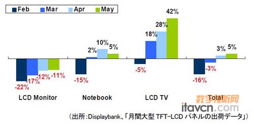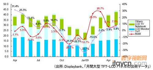 韓國研究機構Displaybank近日宣布,2009年5月全球大型TFT液晶面板的供貨量創下了單月最高記錄,達到4373萬枚。比上年同期增加5.4%,比上月增加7.9%。Displaybank根據供貨量自09年1月以后時隔5個月創歷史最高記錄這一情況,認為“液晶面板行情已經完全走出低谷”。