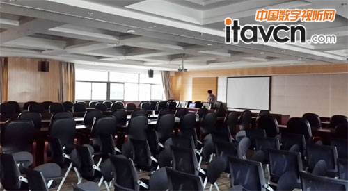 在6樓可組合的230平米大會議室內,主要功能是會議。這其中采用了ASHLY 12只CS61吸頂喇叭和4只CW18木箱進行會議擴聲,CS61是同軸設計單元,人聲飽滿而清晰;CW系列即是專門針對會議系統而設計的一款木質音箱,其憨厚而不失穩重的外觀,適中的覆蓋角度,特出人聲表現的頻響曲線,用于會議擴聲再適合不過了。