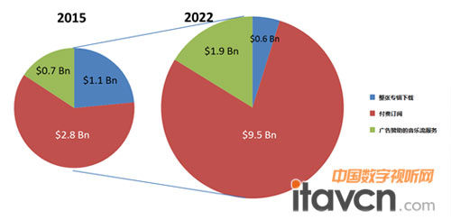 【中國數字視聽網訊】Strategy Analytics最新預測顯示,流音樂服務占移動音樂市場的總價值份額將會從2015年的76%增長到2022年的95%,同時用戶將會增長兩倍以上達到9.5億。
