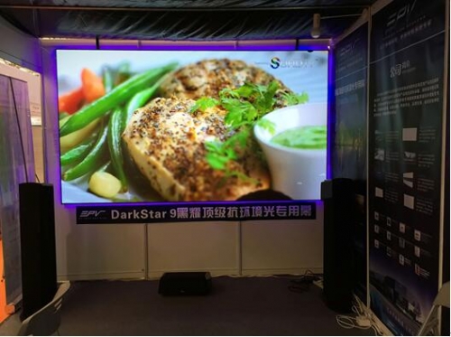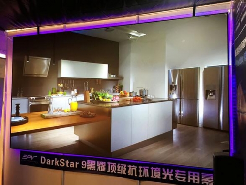 億立導入美國高端EPV系列的DarkStar 9™影院級光學抗環境光幕,表面成像圖層采用獨特抗光涂料制成,適用于FullHD及4K環境。本次展會這款幕布會搭配Sony 4K投影機旗艦機型,現場畫面效果驚人,色彩逼真,細節豐富。