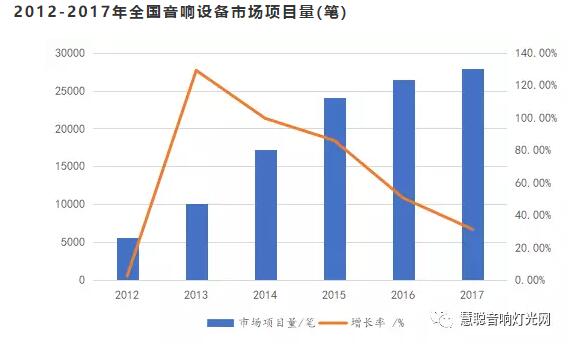 中國音響行業近六年來取得了穩定的發展,增長率逐步放緩的同時,項目量呈逐步上升的趨勢。