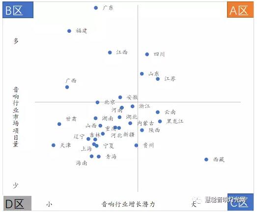 統計范圍:增長潛力根據近兩年該地區項目增長率計算,行業項目量根據近半年來公開市場音響設備招標量、計算