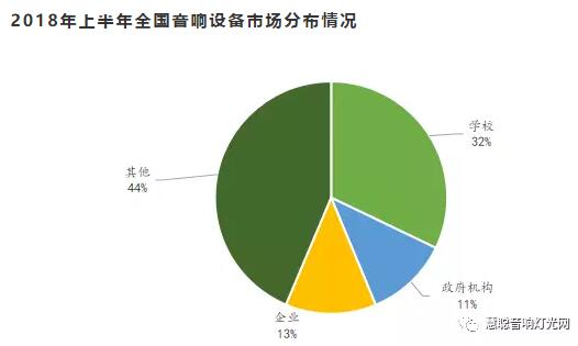 從細分市場上分析,教育市場成為上半年音響設備采購量最多的細分領域市場,企業市場與政府市場也占有一定采購量,這三大細分領域市場的采購量占整體規模的86%。