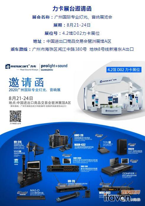 【數字視聽網訊】2020年8月21-24日,廣州國際專業燈光、音響展覽會將在中國進出口商品交易會琶洲展館A區隆重舉行。