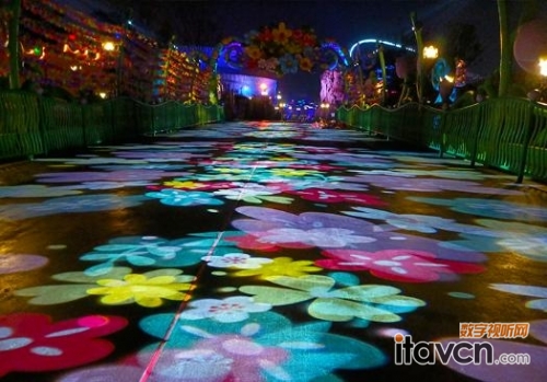 控制系統(tǒng)采用了燈光重放器,將提前錄制好的燈光效果錄入,每日定時(shí)開啟與關(guān)閉,不需要人員操作,燈具方面一號(hào)橋選擇了水紋燈,紫光燈、投影燈,將整個(gè)橋面、橋頭以及周邊石頭造型打亮,游客們經(jīng)過大湖秀之后,來到這里,會(huì)看到整個(gè)橋面都是花朵,這時(shí)游客們進(jìn)入了奇遇花園。一號(hào)橋西綠化帶內(nèi)除了LED彩虹燈、螢火蟲燈、搖擺螢火蟲燈以外還放置了動(dòng)物燈雕,在這里游客們仿佛看到了栩栩如生的小動(dòng)物。