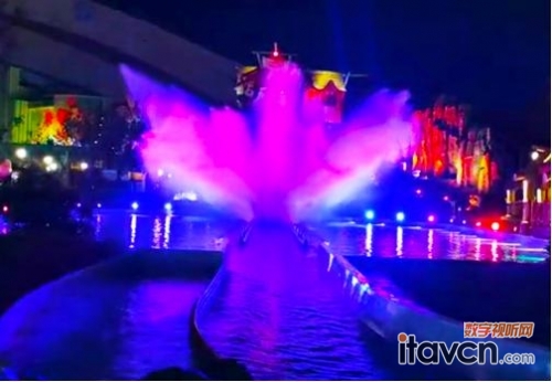 控制系統(tǒng)采用了燈光重放器,將提前錄制好的燈光效果錄入,通過紅外感應(yīng)方式進(jìn)行觸發(fā),在船體下降過程中激起浪花的瞬間,將系統(tǒng)觸發(fā),LED帕燈的光斑打在了浪花上,形成炫酷的效果。