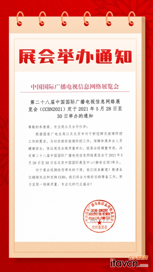 【重要通知】CCBN2021展會延期舉辦通知