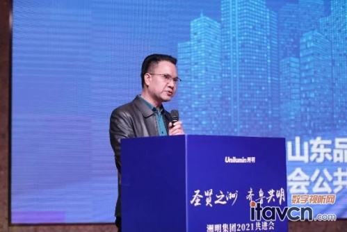 山東品牌公信力聯盟副理事長楊中海為大會致辭。他對洲明取得的成績表示肯定,對洲明積極參與山東城市建設與經濟發展的實踐表示贊許,并期待洲明在山東經濟社會高質量發展中發揮更大作用。