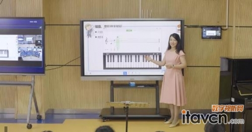 「我讓學生在智慧黑板的一組琴鍵上彈出所有的『do』,那邊的孩子也能同時在他們的黑板上操作,我們馬上看到兩邊孩子上課的情況。」荔灣少年宮的李老師說。