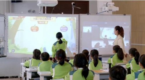 如今,老師在一體機,就可以給兩地展開直播啟動、同步游戲、同步書寫等操作。