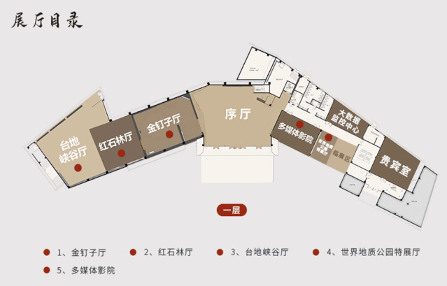 俯瞰全館,博物館自序廳往兩側(cè)延伸,通道貫通東西兩個(gè)區(qū)域。西側(cè)區(qū)域主要是對(duì)湘西地區(qū)巖石礦物、古生物以及古化石標(biāo)本等自然產(chǎn)物進(jìn)行收集和展示;東側(cè)區(qū)域則是會(huì)議廳堂的集中地,不僅囊括了多個(gè)可容納數(shù)百人的3D科普影視廳和學(xué)術(shù)報(bào)告廳,還在會(huì)場內(nèi)利用聲、光、電設(shè)備全方位、立體化地向觀眾介紹湘西地質(zhì)地貌景觀、民族人文景觀、生物種類,充分展示上古至今,滄海桑田的變遷史。