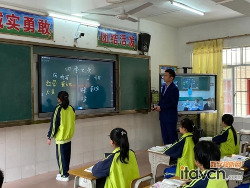 本次活動中,松原市哈薩爾路小學的金老師將一堂富滿文化氣息的《四季之美》語文課,帶給縱跨3000多公里的信宜市東鎮(zhèn)街道北邏小學,給南方的孩子們生動形象地講解冬天的雪、秋天的楓,讓南北氣候差異以及文化底蘊在課堂上分享而出,兩邊的孩子盡情表達著自己對于南北方四季不同的了解,互相交流學習,讓一堂原本單調(diào)的課堂變得趣味橫生。