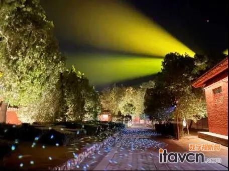 走過鐘樓及鼓樓兩側(cè),借助itc投影燈、LED星空燈,以絢麗多彩的光束與新穎別致的圖案打造獨特的通道夜景;