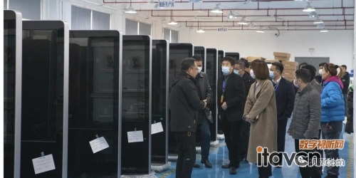 楊洪彬書記一行首先參觀了視頤科技制造車間,詢問了有關工人保障和消防安全等情況,視頤工廠負責人認真作答。楊洪彬書記在一樓車間還觀看和體驗了正在生產的視頤86英寸AR互動一體機,對視頤產品的性能點頭稱贊。