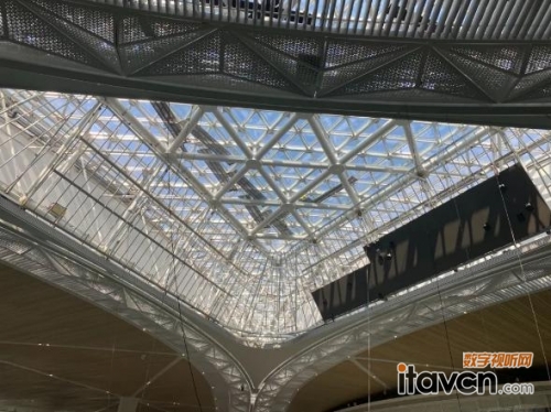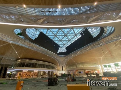 由于衛星廳內人群活動多、流量大,在室內,尤其對高層建筑上的屏幕防塵要求極高。衛星廳專家團隊經過一系列場勘、研判,選擇洲明戶內創意產品UslimII,3500nits確保畫面清晰、色彩細膩(動態HDR),同時防護灰塵滲透,配備ABS技術,以最大程度支撐屏體穩固運行。