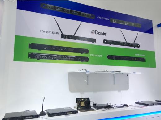 ATUC-IRCUDAN、5000系列無線接收機(jī)ATW-R5220DAN以及ATW- DR3120DAN均配置支持Dante網(wǎng)絡(luò)音頻輸出。帶DanteTM網(wǎng)絡(luò)輸出功能的懸掛式話筒ATND933aWC和ATND931aWML、界面話筒ATND971a和桌面式話筒座ATND8677a于現(xiàn)場實(shí)現(xiàn)了收音。