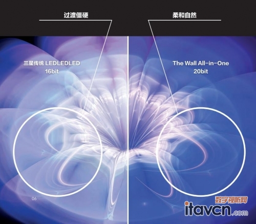 The Wall All-in-One搭載了三星全新的Micro LED芯片,搭配純黑COB封裝技術,可帶來純粹而深邃的黑色表達,使對比度提升至1,000,000:1;純色度技術則可讓窄波長芯片產生的RGB顏色更加精準,色彩純度達到三星傳統LED的2倍。