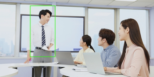 第二代自動框選功能同樣采用了維海德全新AI算法來準確識別會議室的參會人,從而能夠智能判斷會議室人員增減,再聯(lián)動云臺自動調(diào)整畫面構(gòu)圖,確保每一個參會人都能進入會議畫面。