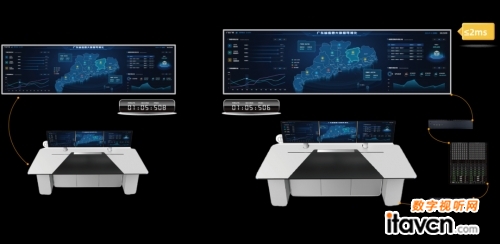 深圳地鐵NOCC大廈綜控室操作人員可直接控制展示大屏接入的業(yè)務(wù)主機(jī)信號(hào),信號(hào)傳輸延時(shí)≤2ms,信號(hào)切換無黑屏無卡頓,實(shí)現(xiàn)主觀無延時(shí),進(jìn)行實(shí)時(shí)可視化全景監(jiān)測,確保深云車輛段范圍消防安全疏散的設(shè)施及通道完好,做到“第一時(shí)間發(fā)現(xiàn),第一時(shí)間掌控”。
