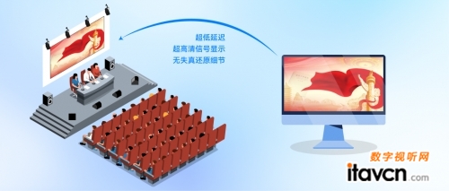 通過使用CVS分布式音視頻節點深度對接投影融合設備,將采集的視頻源進行合理分配、切換、展示,將畫面投射到投影幕上,超低延遲、超高清信號顯示,無失真還原影像細節,實現“一草一木一忠魂,一山一石一豐碑”的革命歷史場景復原,給學員營造沉浸式氛圍感受。