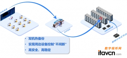 CVS分布式音視頻調(diào)度系統(tǒng)通過配置兩臺(tái)中控處理器,雙機(jī)同時(shí)運(yùn)行,實(shí)現(xiàn)雙機(jī)熱備份的功能作用,增強(qiáng)系統(tǒng)的穩(wěn)定性、安全性、可靠性。當(dāng)系統(tǒng)發(fā)生局部故障,主機(jī)與備機(jī)執(zhí)行無縫切換,保障中控系統(tǒng)正常運(yùn)行,中控功能“不掉線”,周邊設(shè)備管控“不間斷”。
