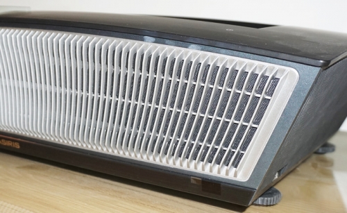 在腳墊方面,以往我們見到的激光電視產品基本都是兩點支撐兩點可調節式的腳墊,在使用過程中、尤其是畫面的調試階段會非常麻煩,而中科極光真激光家庭影院X1A則非常人性化的設置了四個可調節高低的腳墊,通過底部螺旋支教可以隨意對四個角度的高低進行微調,再調整畫面時會更加方便快捷。機器前臉的網狀柵格內部采用了細密的防塵設置,能有效的阻隔外部灰塵的進入,以保障機器內部的清潔,讓機器長期處于良好的環境中穩定的工作。