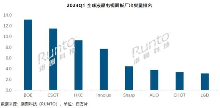 大陸面板廠 CSOT 和 HKC 第一季度分別出貨約 1150 萬(wàn)片和 930 萬(wàn)片,同比一增一降,CSOT 增長(zhǎng) 1.4%,HKC 下降 8.4%,兩者市占率分別為 20.4% 和 16.5%。
