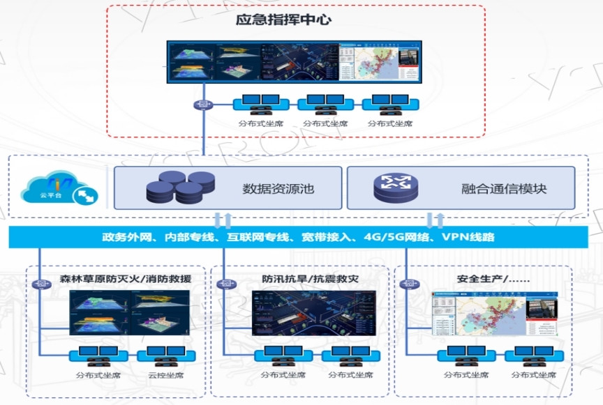 我們知道在應急指揮調度時,指揮調度人員需要調用多個業務系統的數據進行綜合研判,這些業務系統包括:社會面的視頻監控系統、多種安全生產監管系統、融合通信系統、無人機管控系統等等,這些系統通常分散在不同網絡、不同部門,存在數據隔離、互通困難的問題。威創通過分布式數據采集的方式,將這些分散的數據信號統一匯聚到云化的應急數據資源池,有了這個資源池后,就可以通過威創的超融屏、全要素坐席對數據信號進行跨系統、跨網絡調用,輔助指揮調度人員多角度、立體全面了解災害及應急情況,作出科學及時的決策。