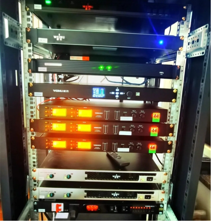 【數字視聽網訊】本次京東哈密智慧園區項目主要選用威木數字功放 WM-GF2350和時序電源WM-PS880H,時序電源WM-PS880H有帶RS232接口、濾波及防雷功能,確保了該會議室設備用電系統的穩定。
