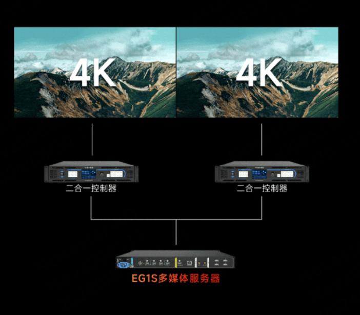 單機4K@60Hz點對點輸出能力,支持單[email protected]或DP1.2復制輸出,也可拆分4路2K@60Hz HDM1.3輸出,既滿足單個大屏又滿足多個小屏的帶載需求。