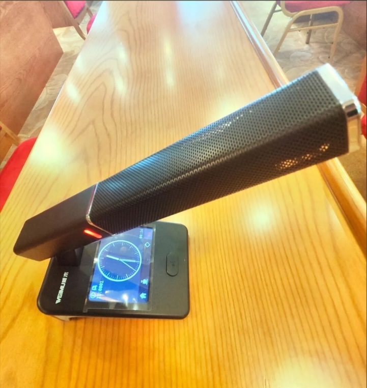 威木無線觸摸鵝頸會議代表機,臺面式強抗靜電功能設計,符合人體工程學,極具有現代科技感。產品使用流暢具有發言、攝像跟蹤、投票表決(可選同聲傳譯)、會議服務、中控觸屏于一體的多功能會議終端。