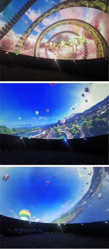 產品介紹:20米直徑飛行影院,4K投影機,贏康采用了7thSense Infinity媒體服務器,Scalable自動校正軟件,6K60幀影片。