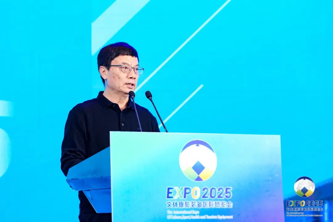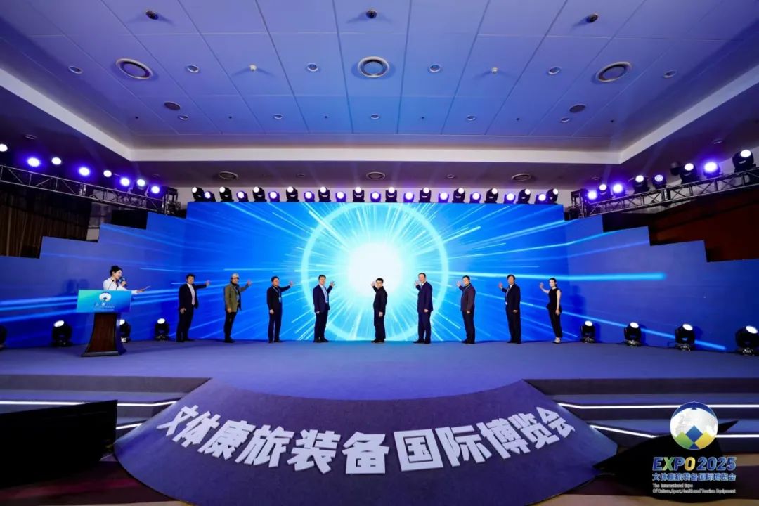 在新聞發(fā)布會現(xiàn)場,各主辦方、承辦方、支持單位代表共同啟動“2025文體康旅裝備國際博覽會”的同時,還發(fā)布了“文體康旅裝備國際博覽會”LOGO,融合體現(xiàn)博覽會“科技創(chuàng)新”“綠色健康”“人文活力”的主體理念。