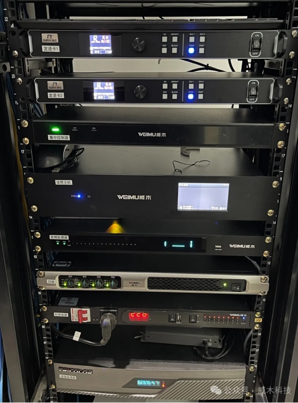 本次會議改造,最終選用威木智能控制系統-4K攝像機-全頻音柱-時序電源等產品,作為系統的核心產品,改造完成后能實現一鍵切換、管理所有音視頻,大大提高了會議效率。
