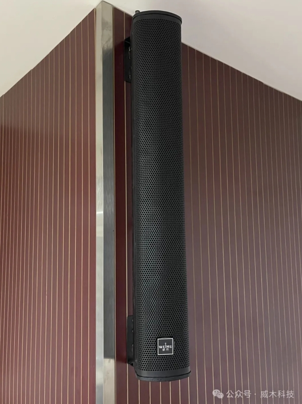 為保證整場的聲壓級勻稱清晰,現場大屏2側部署了2只威木全頻音柱WM-YZ08作為主擴,2只全頻音柱WM-YZ08部署在后面作為補聲,使得整個參會人員有更佳的聽感體驗。配置1臺4通道數字功放 WM-GF4350,1U鋁面板設計,采用CLASS D轉換速度快,聲音通透亮麗,加上強大的處理和保護性能,高效保障揚聲器系統的使用安全。