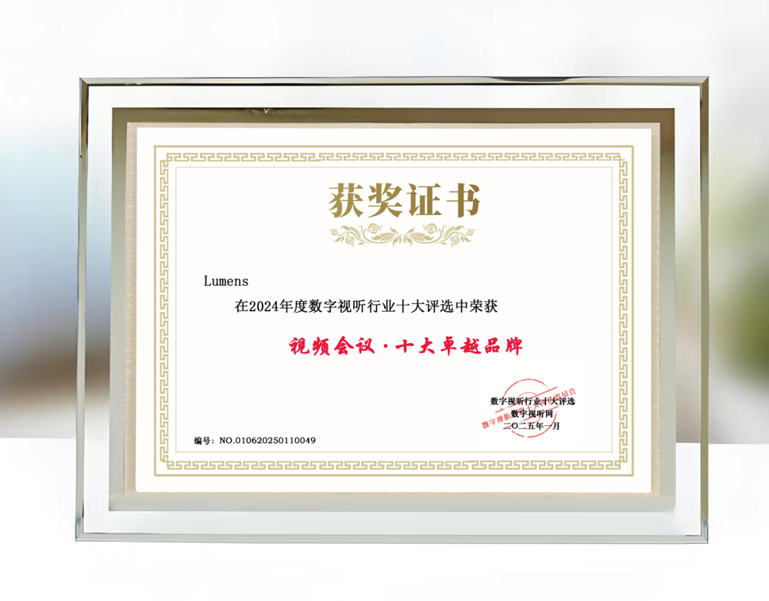 【數字視聽網訊】由數字視聽網傾力主辦的“創新引領變革,品牌創造價值”2024年度數字視聽行業十大評選活動也已落下帷幕。年度評選活動不僅是對視聽行業一年來發展成果的全面檢閱與總結,更是對行業新銳產品及品牌的高度贊譽,是對企業辛勤耕耘與卓越貢獻的至高榮譽與鼓勵。經過一個多月的公眾網絡投票與專家組委會的嚴謹評定,大獎逐一揭曉。Lumens榮膺2024年度數字視聽行業“視頻會議——十大卓越品牌”。