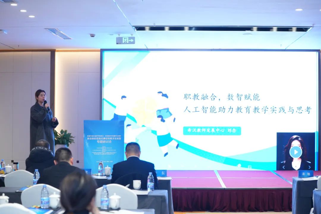 會議現(xiàn)場,希沃深度參與“賦能信息化標(biāo)桿學(xué)校建設(shè)全面推進學(xué)校數(shù)字化轉(zhuǎn)型”專題研討會,并由希沃教育發(fā)展研究院研究員劉念做了題為《職教融合,數(shù)智賦能 —— 人工智能助力教育教學(xué)實踐與思考》,受到現(xiàn)場參會嘉賓高度認可。