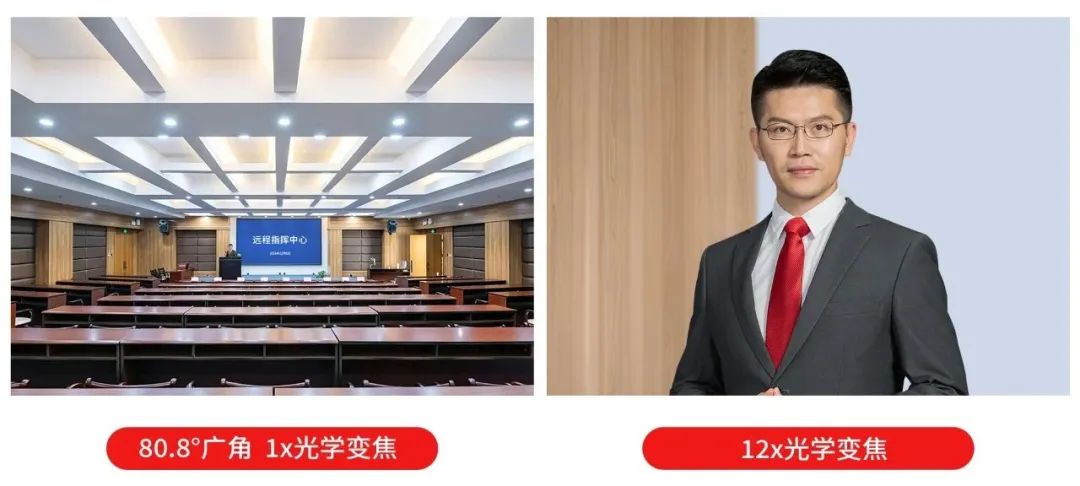 此外,攝像機支持80.8°廣角和12x光學變焦能力,不僅可以覆蓋大范圍的場景,靈活適用于各個指揮中心的大小會議空間,還能夠捕捉清晰的遠距離特寫畫面,無論是會議全景還是人員具體動作,畫面都一覽無余,真正做到了“遠觀全局,近察入微”。豐富、全面、可靠的視覺基礎,也讓應急響應更加迅速、準確。