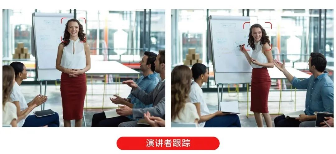 VXU1290通過搭載AI視頻處理算法,提供了與會人框選和演講者(人形)跟蹤功能。攝像機能夠精準識別與會人數量及座位,自動調整鏡頭視角,確保所有人入鏡;也可自動識別并跟蹤拍攝目標人員, 無需人工干預便可實時跟蹤拍攝,極大地減輕了操作人員的負擔,讓操作變得更加快捷高效,為指揮決策爭取了寶貴的時間。