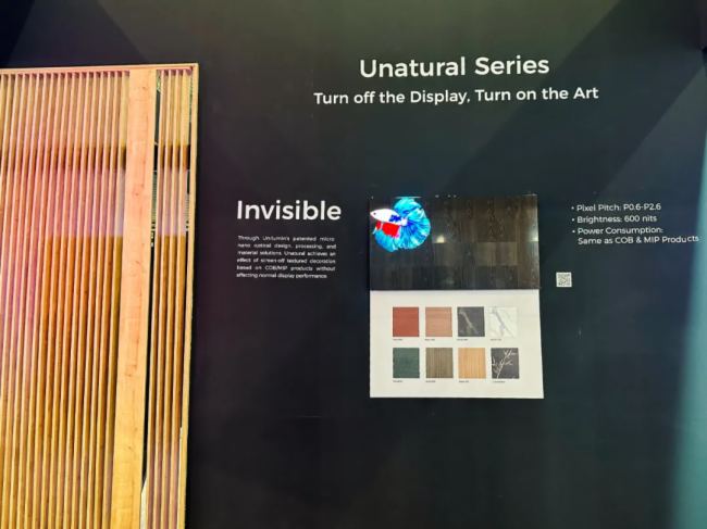 熄屏時呈現自然紋理裝飾效果,亮屏時呈現高清畫面,消除傳統LED顯示屏“黑色面板”的沉悶感;