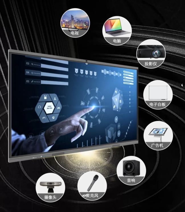 與傳統會議室所常用的投影儀、電視等設備相比,AOC智能會議平板All-in-one一體化集成電視、電腦、投影儀、電子白板、廣告機、音響、麥克風、攝像頭等設備功能 ,充分實現“一機多能”,告別繁瑣,讓會議應用更智能更便捷。要召開會議時,不必再手忙腳亂調試設備,一鍵啟動會議平板,即能展開高效會議。