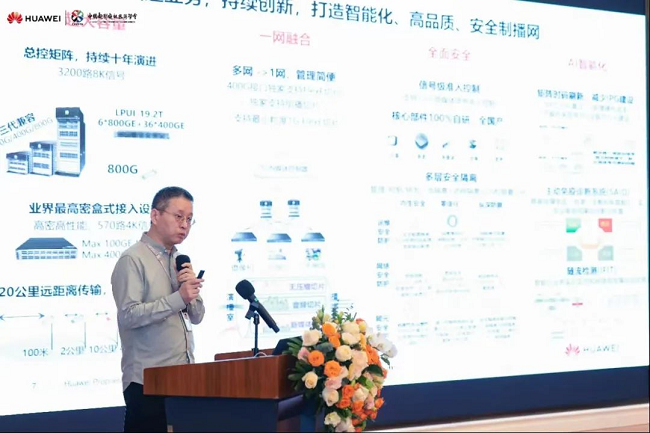 華為中國(guó)政企互聯(lián)網(wǎng)傳媒行業(yè)總經(jīng)理李騰致辭,分享了華為在超高清領(lǐng)域的戰(zhàn)略布局以及對(duì)廣電行業(yè)發(fā)展趨勢(shì)的深刻洞察。他表示, 超高清技術(shù)作為當(dāng)下視聽(tīng)產(chǎn)業(yè)的核心驅(qū)動(dòng)力,正深刻改變著傳媒行業(yè)的生態(tài)格局。制播IP化作為超高清技術(shù)落地的關(guān)鍵路徑不僅打破了傳統(tǒng)制播模式的局限,更以高效、靈活、開(kāi)放的特性,為超高清內(nèi)容的生產(chǎn)與傳播提供了堅(jiān)實(shí)的技術(shù)支撐。華為始終堅(jiān)持以創(chuàng)新驅(qū)動(dòng)發(fā)展,聯(lián)合行業(yè)客戶、伙伴,共同構(gòu)建新一代超高清制播體系。