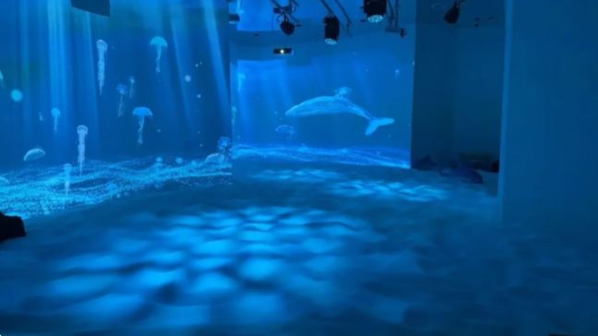 每一處流動的光影變化都與相應(yīng)的聲音效果完美匹配——藍(lán)綠色燈光模擬水波流動,配合輕柔的海浪聲;閃爍的光點仿佛魚群游動,與歡快的游動音效相呼應(yīng)。這種視聽結(jié)合的設(shè)計,讓孩子們仿佛置身于真實的深海世界,開啟深海探秘之旅。