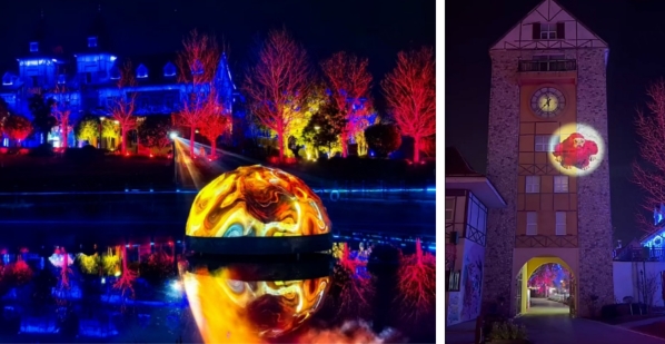 此次光影演出覆蓋五大核心場景,包括“玫瑰之約”教堂立面投影、“仙影闌珊”仿真花裙投影、“鐘樓幻境”、“法街·薔薇城堡”、以及直徑達四米的球幕投影“依欄問月”。這些創意應用將傳統文化與現代科技巧妙融合,為觀眾打造出獨特的視覺敘事體驗。