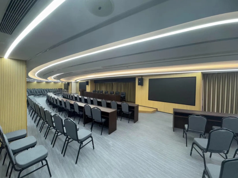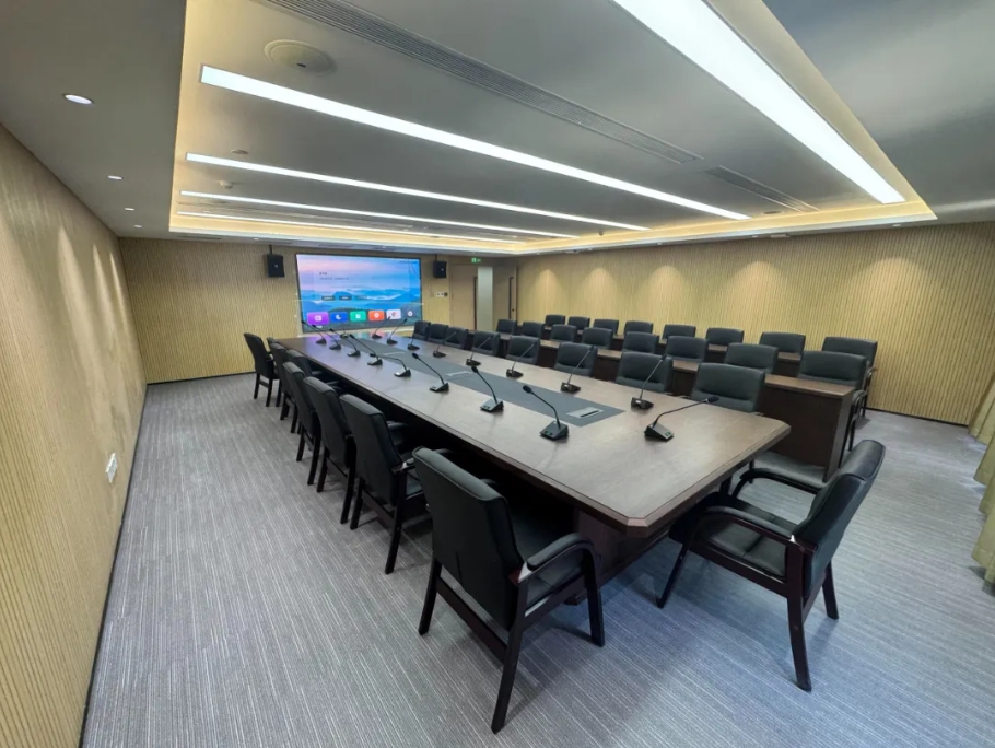 精準(zhǔn)溝通,決策無憂廣信恒生(GXH)打造的全數(shù)字會議系統(tǒng),宛如會議的“智慧中樞”。采用先進(jìn)的數(shù)字音頻處理技術(shù),確保參會人員發(fā)言清晰、無雜音,即使身處會議室角落,聲音也能精準(zhǔn)傳達(dá)。系統(tǒng)還支持語音轉(zhuǎn)寫、攝像跟蹤、會議主題等功能。// 聲臨其境,清晰入耳廣信恒生(GXH)精心設(shè)計的擴(kuò)聲系統(tǒng),充分考慮了理事會會議室的聲學(xué)環(huán)境與空間布局。通過專業(yè)的調(diào)音師調(diào)試,確保聲音在會議室各個區(qū)域均勻分布,無任何聲壓級差異與回聲干擾。無論是莊重的政策宣講,還是熱烈的討論發(fā)言,每一個字、每一句話都能以清晰、飽滿、真實(shí)的聲音呈現(xiàn),讓參會人員仿佛置身于一個純凈的音頻世界,全身心投入到會議內(nèi)容中,極大地提升了會議的聽覺體驗與信息接收效率。// 一鍵掌控,智能便捷為簡化會議設(shè)備操作、提升會議管理效率,本次解決方案以中控系統(tǒng)為核心亮點(diǎn),對會議室內(nèi)各類設(shè)備進(jìn)行集中控制與管理。操作人員通過控制終端輕點(diǎn)按鈕,即可實(shí)現(xiàn)矩陣、LED大屏、電源等設(shè)備的開關(guān)與調(diào)節(jié),無需在設(shè)備間往返奔波。此外,系統(tǒng)支持預(yù)設(shè)演講模式、討論模式、休息模式等多種會議場景,一鍵切換即可快速調(diào)整會議室環(huán)境,滿足不同會議需求,顯著提高會議組織效率與便捷性。