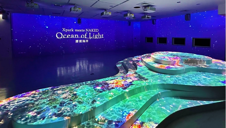 “Xpark meets NAKED~Ocean of Light 潛浸海洋”展覽的投影效果采用了22臺科視 Christie 1DLP 激光投影機和內容管理解決方案(圖片由進懋有限公司提供)