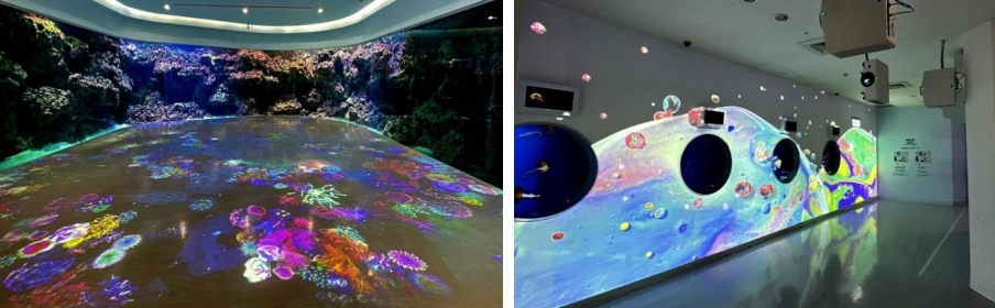 本次安裝的投影設備在寬幅弧形墻面與地面上呈現出逼真震撼的海洋視效,為觀眾營造沉浸式的光影氛圍,仿佛置身于一個栩栩如生的海底世界。值得一提的是,早在2020年開館時,Xpark便部署了60多臺科視Christie投影機,包括GS系列與Captiva系列產品,并配備20臺潘多拉魔盒服務器、緊湊型播放器以及Widget Designer自定義控制設計工具,打造靈活定制的互動體驗。此次的全新部署進一步深化了雙方的合作。