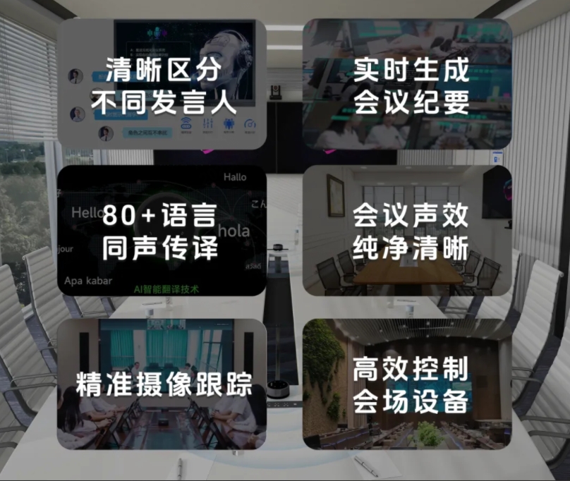 突破傳統中英雙語互譯局限,方案支持80 +種語言實時同傳。基于聲紋識別、語音轉錄和智能翻譯三大AI技術創新融合,跨國會議中,參會者可實時看到對應語言字幕,通過耳機收聽對應語種的翻譯語音,徹底打破語言壁壘,通過遠程視頻會議讓全球協作 “零障礙”