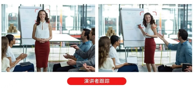 目標人員走動時,鏡頭自動避開穿行人群干擾,始終鎖定目標,再也不會出現鏡頭跟不上、追丟目標等尷尬。整個跟蹤拍攝過程無需專人操控,有效解放了人力,讓會場調度更加高效有序。