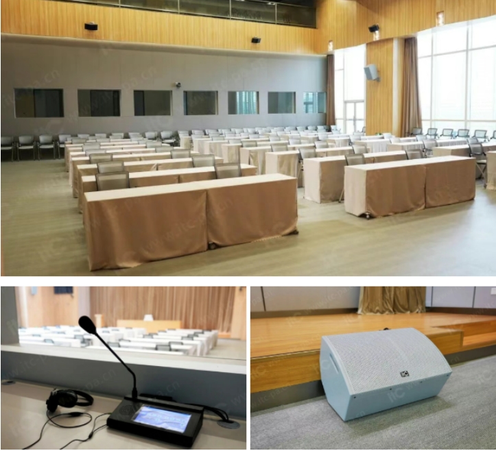在發言系統方面,報告廳每坐席前均配置itc大振膜鵝頸式麥克風,其拾音范圍寬廣,靈敏度卓越,精準還原音質。搭配itc專業擴聲系統,能夠確保會議擴聲清澈流暢,營造出無噪、高保真的聲學環境,讓每位參會人員都能聽清發言內容,更好地聽會及參與討論。